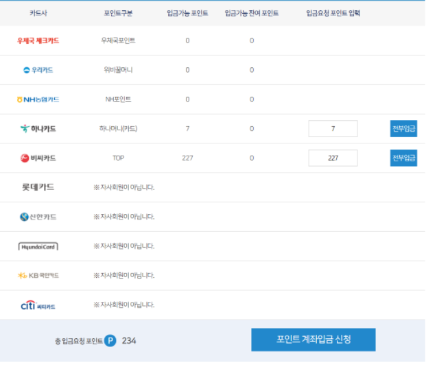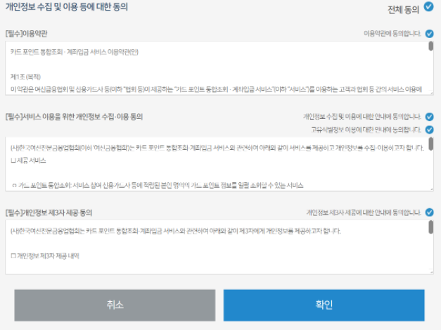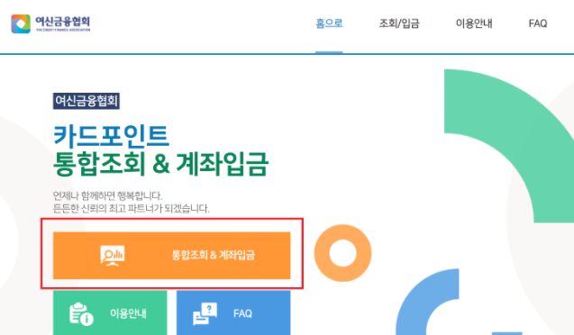 여신금융협회 카드포인트 통합조회 계좌입금