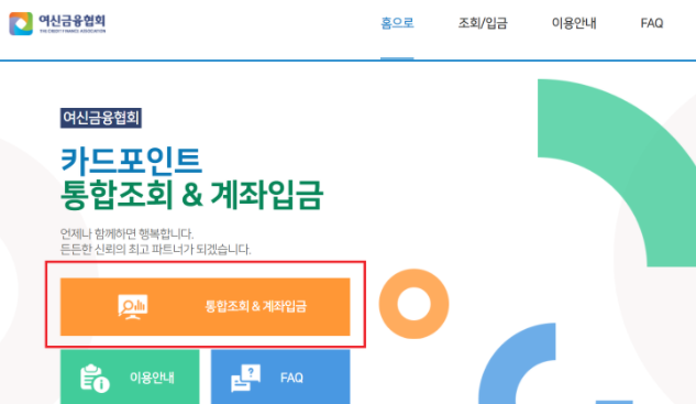 여신금융협회 카드포인트 통합조회 & 계좌입금 언제나 함께하면 행복합니다. 든든한 신뢰의 최고 파트너가 되겠습니다.