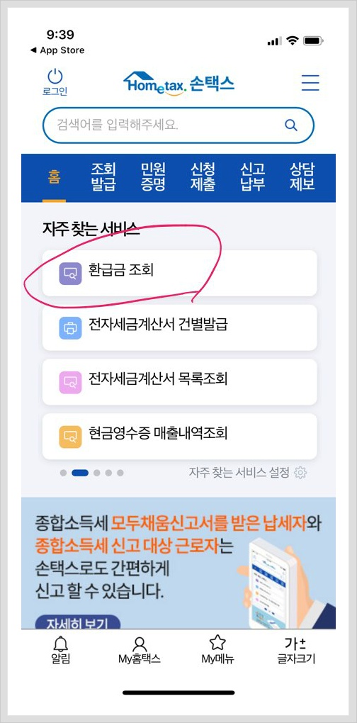 미수령환급금은 홈택스 홈페이지를 통해서 가능하며 간편하게 스마트폰에서 손택스 앱을 이용해서도 확인을 할 수 있습니다.